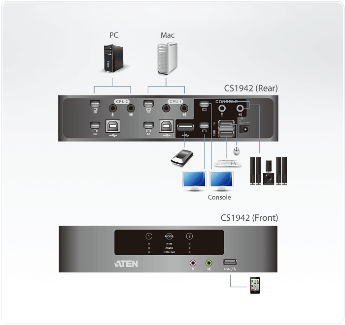 | Product Name | Aten 2-Port USB Mini DisplayPort/Audio Dual Display KVMP Switch |