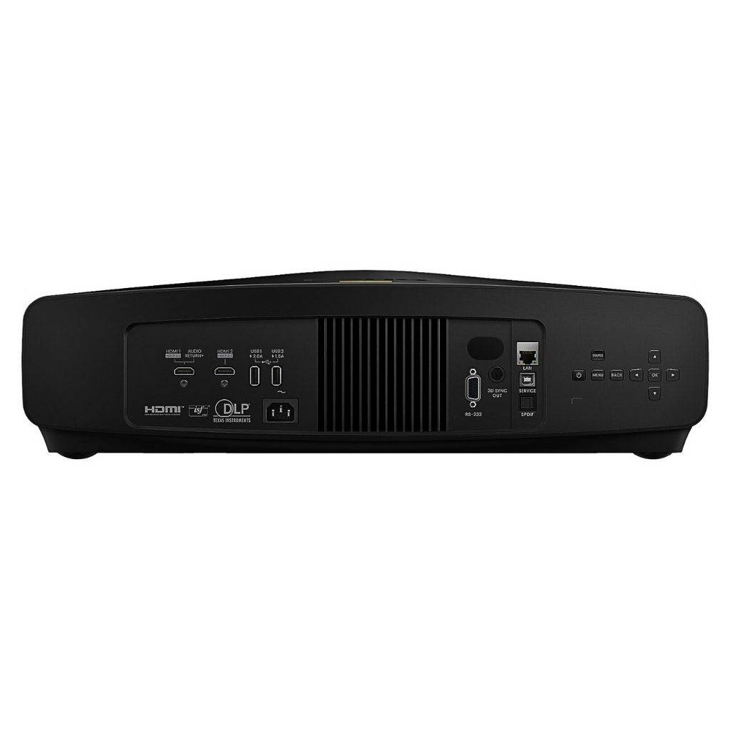 From a connectivity standpoint, the projector offers dual HDMI 2.1 ports (HDCP 2.2), supporting the latest video formats and allowing high-bandwidth signals. It also includes USB-A ports (with power supply options), LAN (RJ45), RS232, VESA 3D sync, and SPDIF out. Crucially, the W5850 supports eARC with 7.1-channel Dolby Atmos pass-through on HDMI-1, enabling uncompressed multi-channel audio delivery to external receivers and sound systems via a single cable.