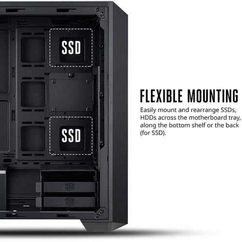 The uniquely modular design of the MasterBox creates space where there usually isn't. The case supports: