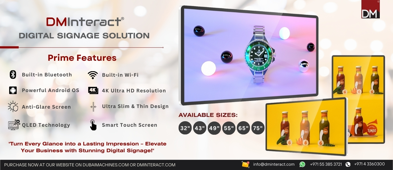 Looking to invest in Digital Signage and Video Walls? You’re in the right place! We offer a premium range of interactive displays, LED panels, and video walls in the UAE and worldwide at competitive prices. Perfect for advertising, presentations, and corporate communications, these displays feature high-resolution 1080p and 4K Ultra HD visuals, reliable performance, and versatile sizes to meet your needs. Upgrade your space with cutting-edge technology and enjoy convenient delivery across the UAE.