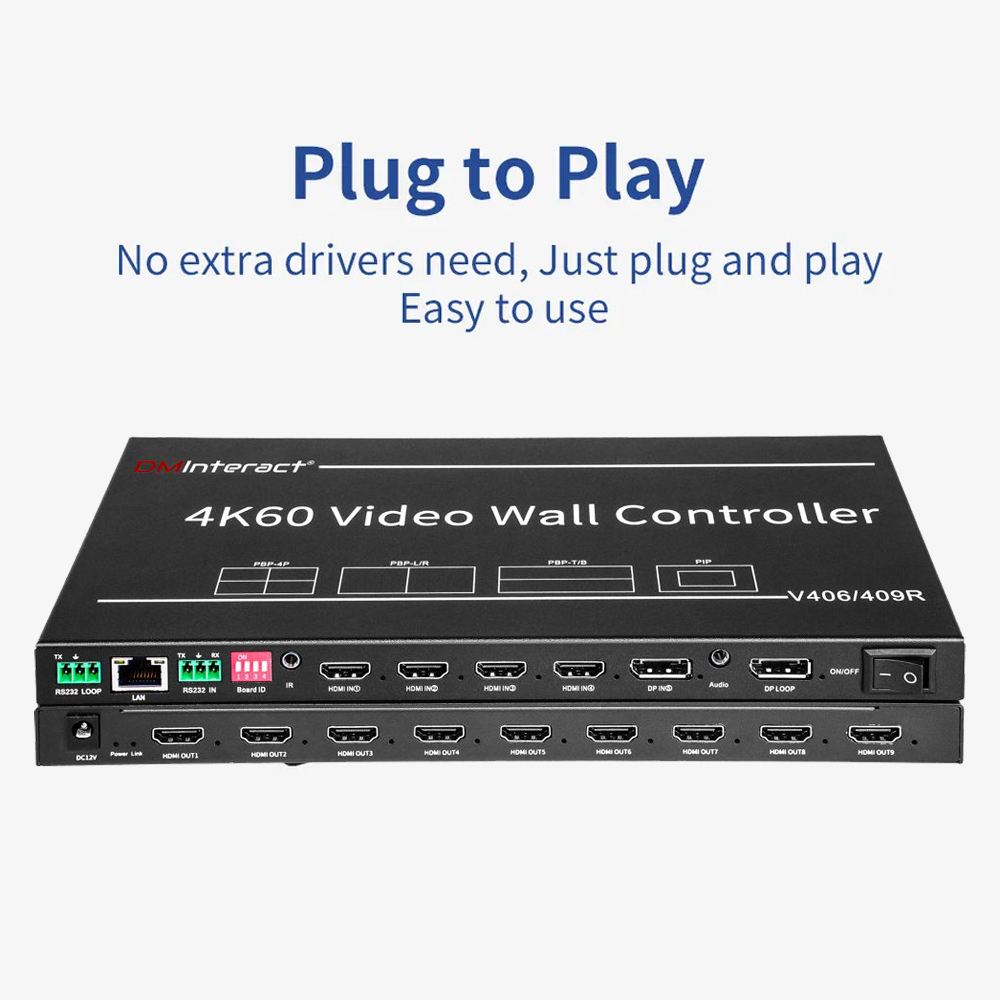 DMInteract 3x3 4K Video Wall Controller With 9 I/O 1080P 60Hz (9x9) 4x2 2x4 2x3 3x2 2x2 HDMI Matrix Switcher Processor HD Splicer Splitter