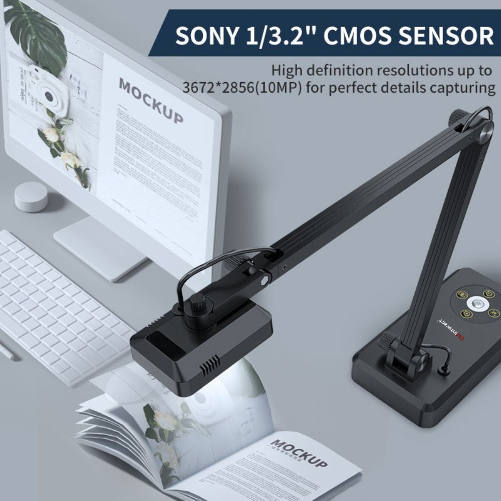 DMInteract DM-2In1Scanner Auto‑Focus 10MP Visual Presenter for Documents Books & Live Streaming