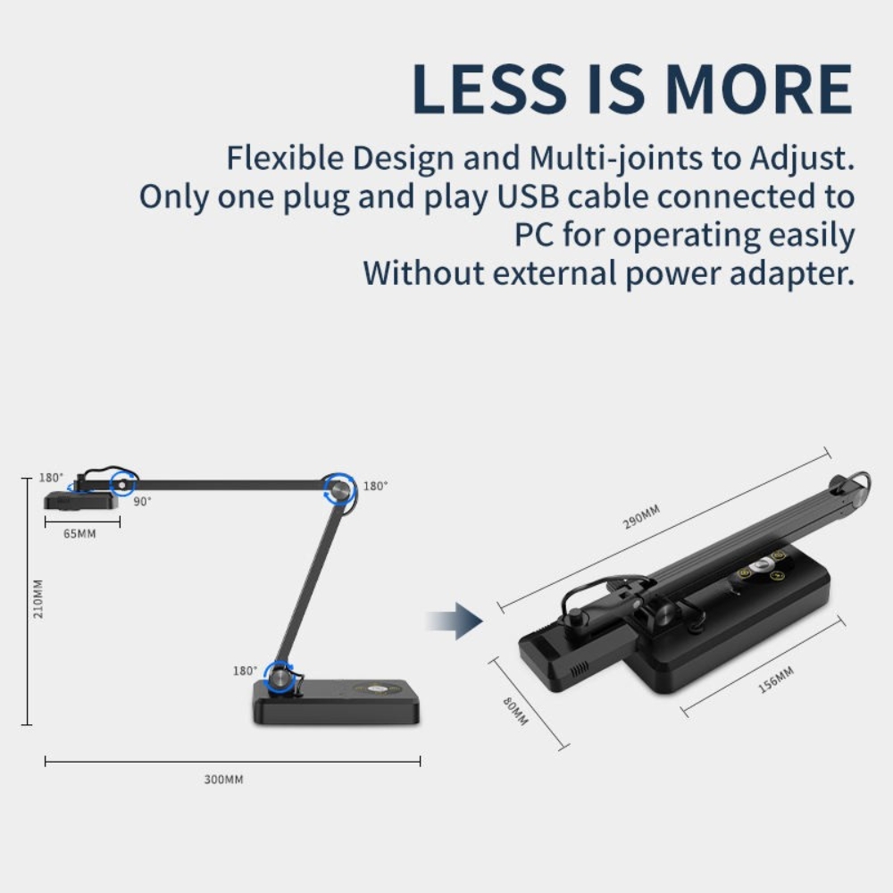 Brilliant Scans with Smart Lighting & Precision Autofocus Achieve professional-quality results with the DM-2In1Scanner, designed for documents, books, photos, and even 3D objects. Equipped with natural light plus touch LED fill lighting, it delivers consistent, shadow-free illumination for every scan. Its 10MP CMOS sensor with precise autofocus captures sharp, vibrant images instantly. Enjoy high-speed scanning (~1 second per page), versatile image controls, and broad software compatibility, making the DM-2In1Scanner ideal for online teaching, office use, webcasting, and archival purposes.  |