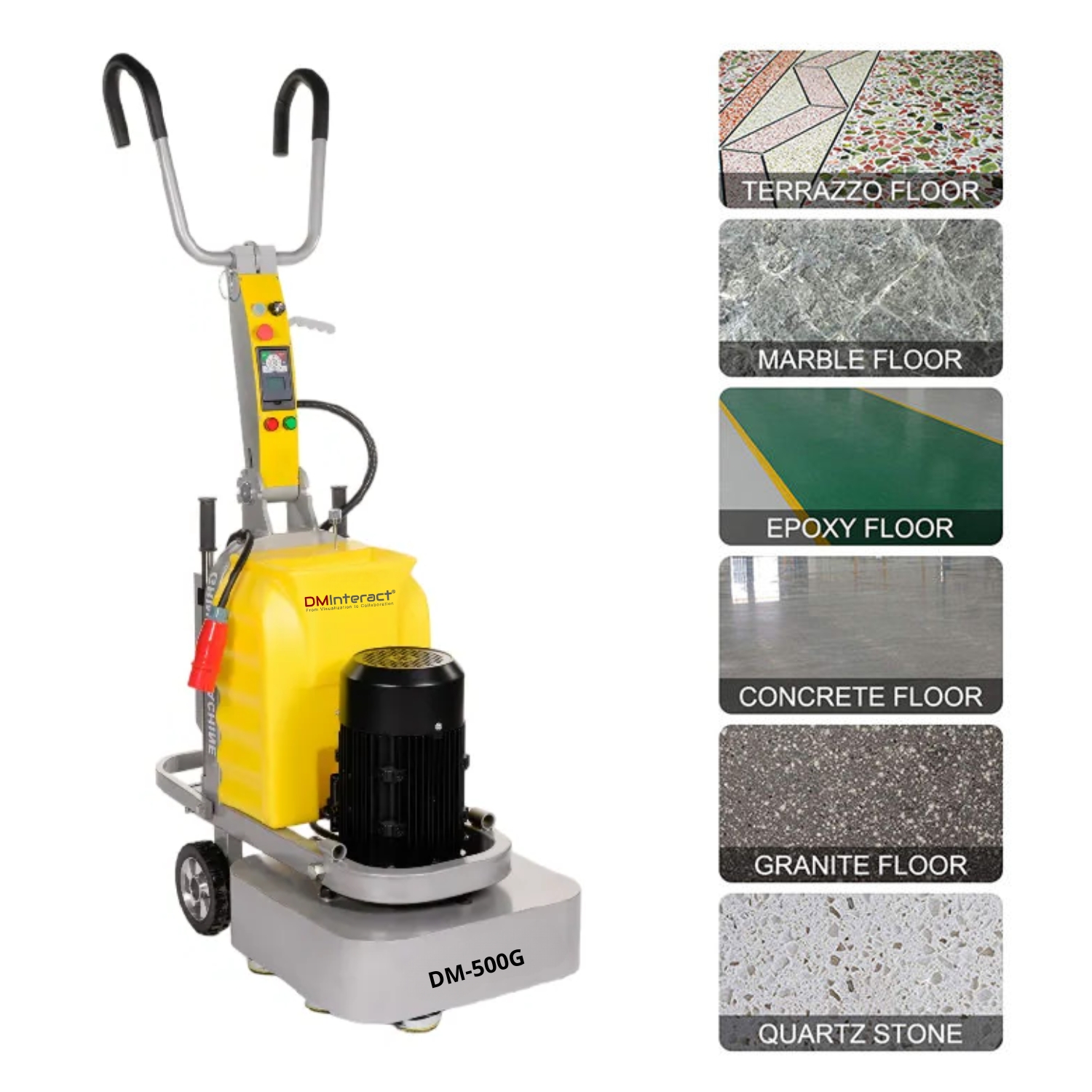 The DM-500G is equipped with a high-torque motor and precision gear system, providing stable rotation under load for uniform grinding and polishing. Its optimized chassis design reduces vibration and ensures excellent operator control, making it ideal for extended work on marble, terrazzo, concrete, and epoxy floors.