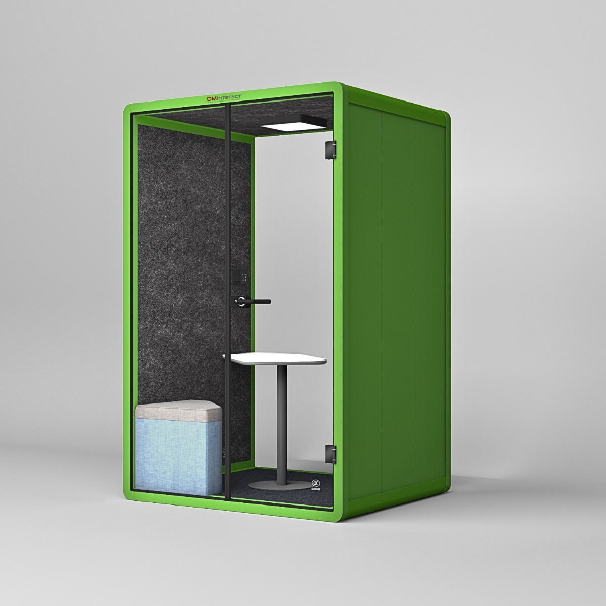 Designed for maximum efficiency in a compact footprint, DM-DualPod balances collaboration and privacy. Its modular construction allows easy assembly and relocation, while interior customization ensures it fits varied work environments. Ideal for small meetings, paired work, or focused discussions, it delivers a professional, productive, and comfortable micro-workspace.