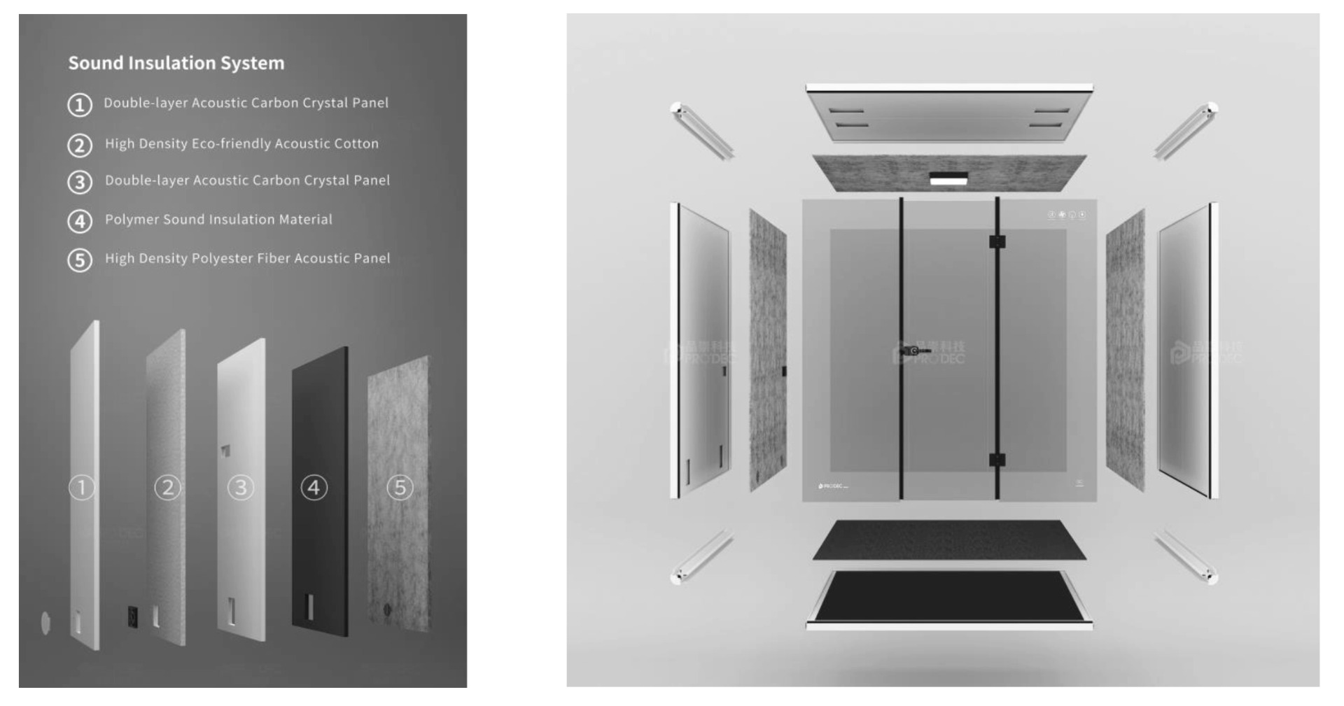 | Eco-Friendly Materials | 38mm double-layer Carbon crystal panel module + 2mm high polymer damping sound insulation material |