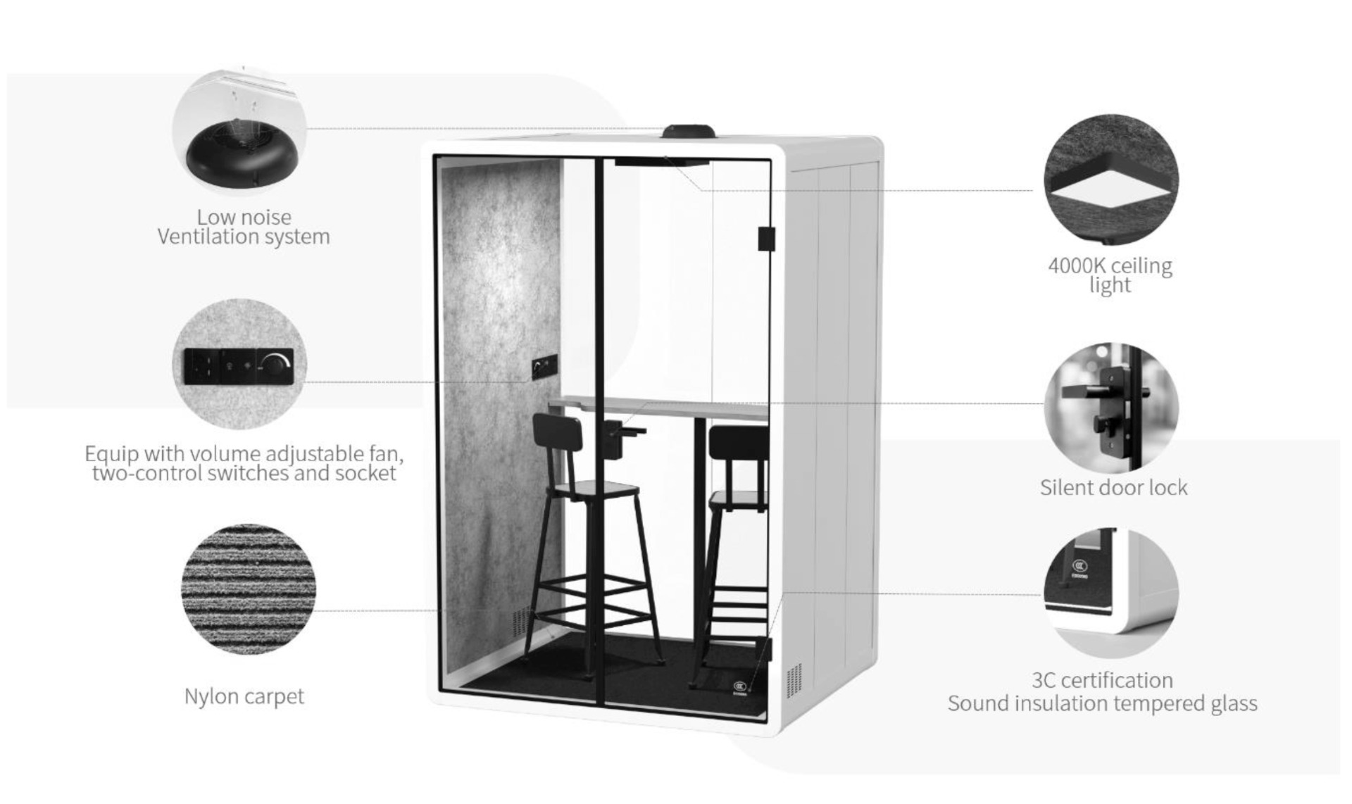 - ✔️ High-performance acoustic insulation for two-person workspace