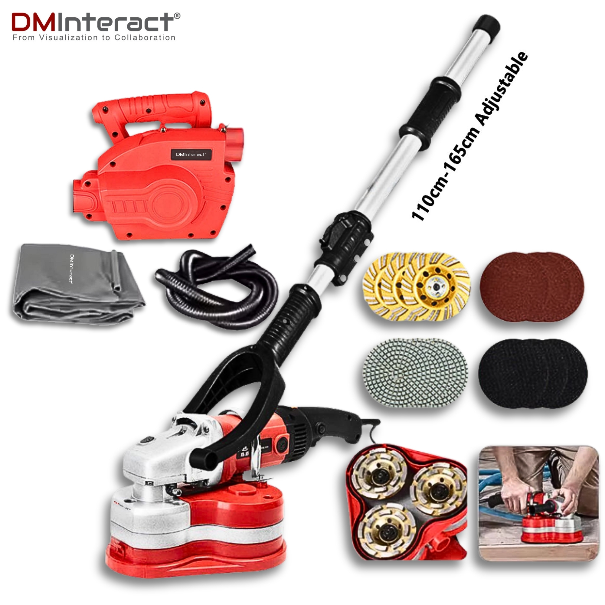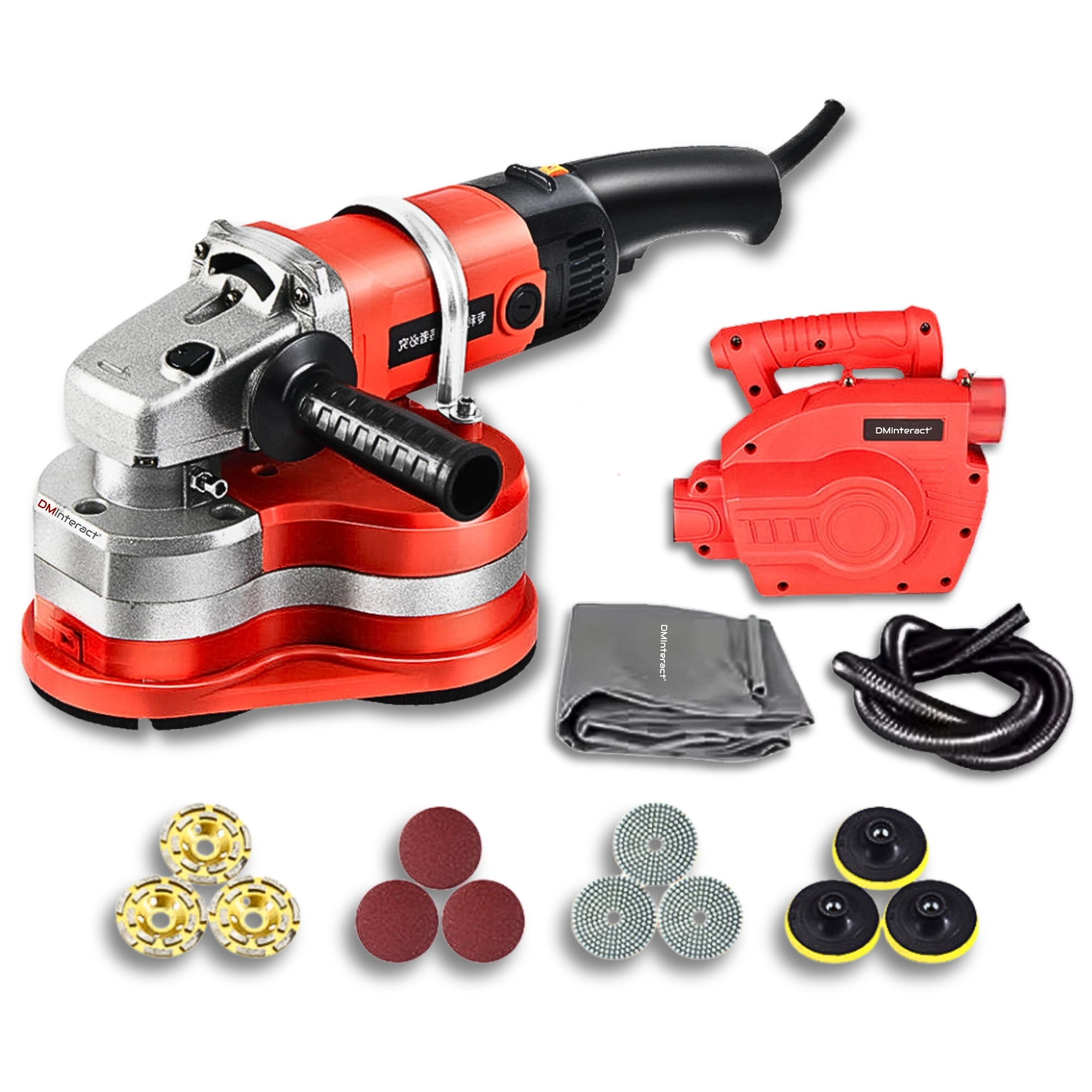 DMInteract DM-FGP310 5400RPM Semi-Automatic Concrete Polishing & Grinding Machine with 4 Types Discs & Dust Vacuum Cleaner