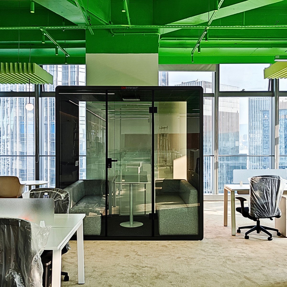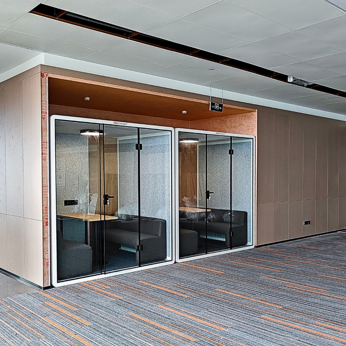 ✔️ High-performance acoustic insulation for six-person workspace