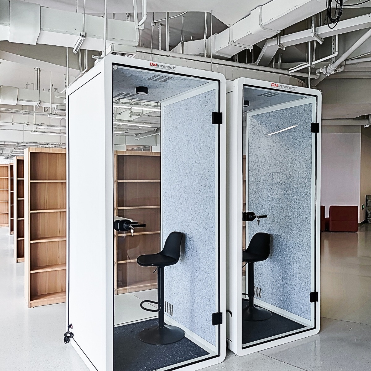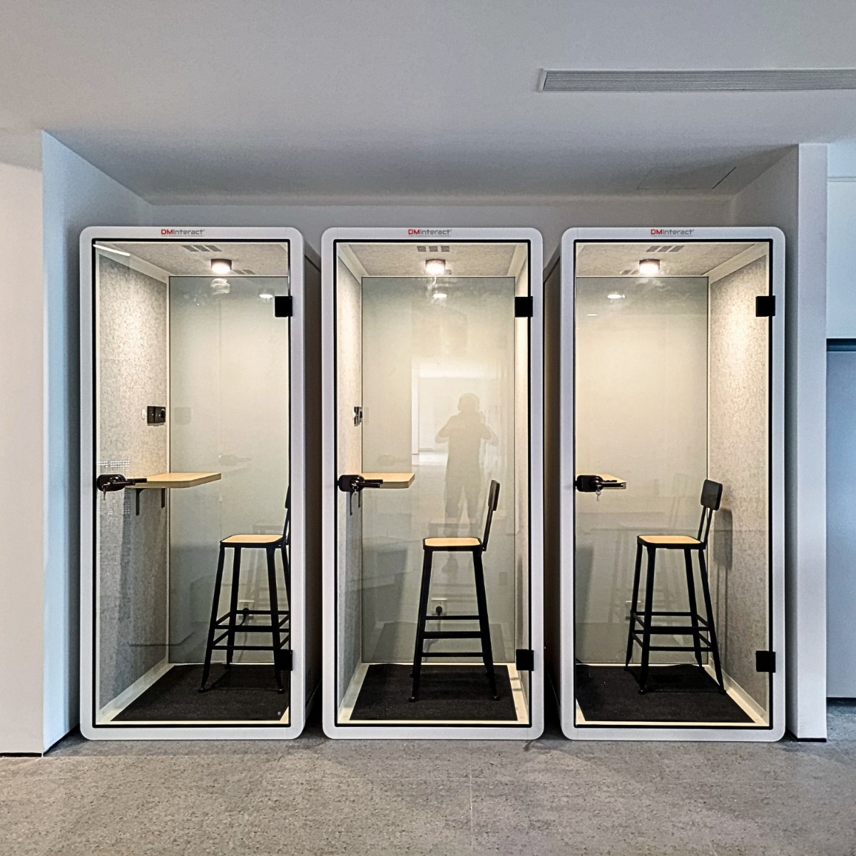 Designed to fit easily within offices, co-working spaces, educational setups, or home studios, DMInteract Solo provides maximum utility with minimal space usage. Its modular structure ensures quick installation and effortless relocation whenever needed, making it a versatile productivity pod for any environment.
