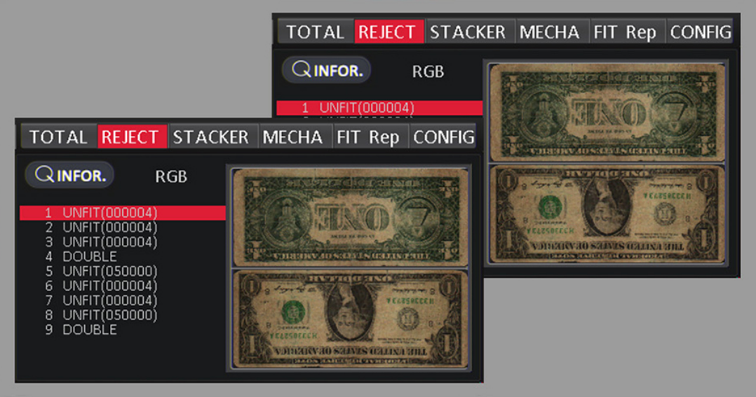 | Operating Modes | Denomination Sort, Fitness Count, Mix Count, Orientation Sort, Piece Count |