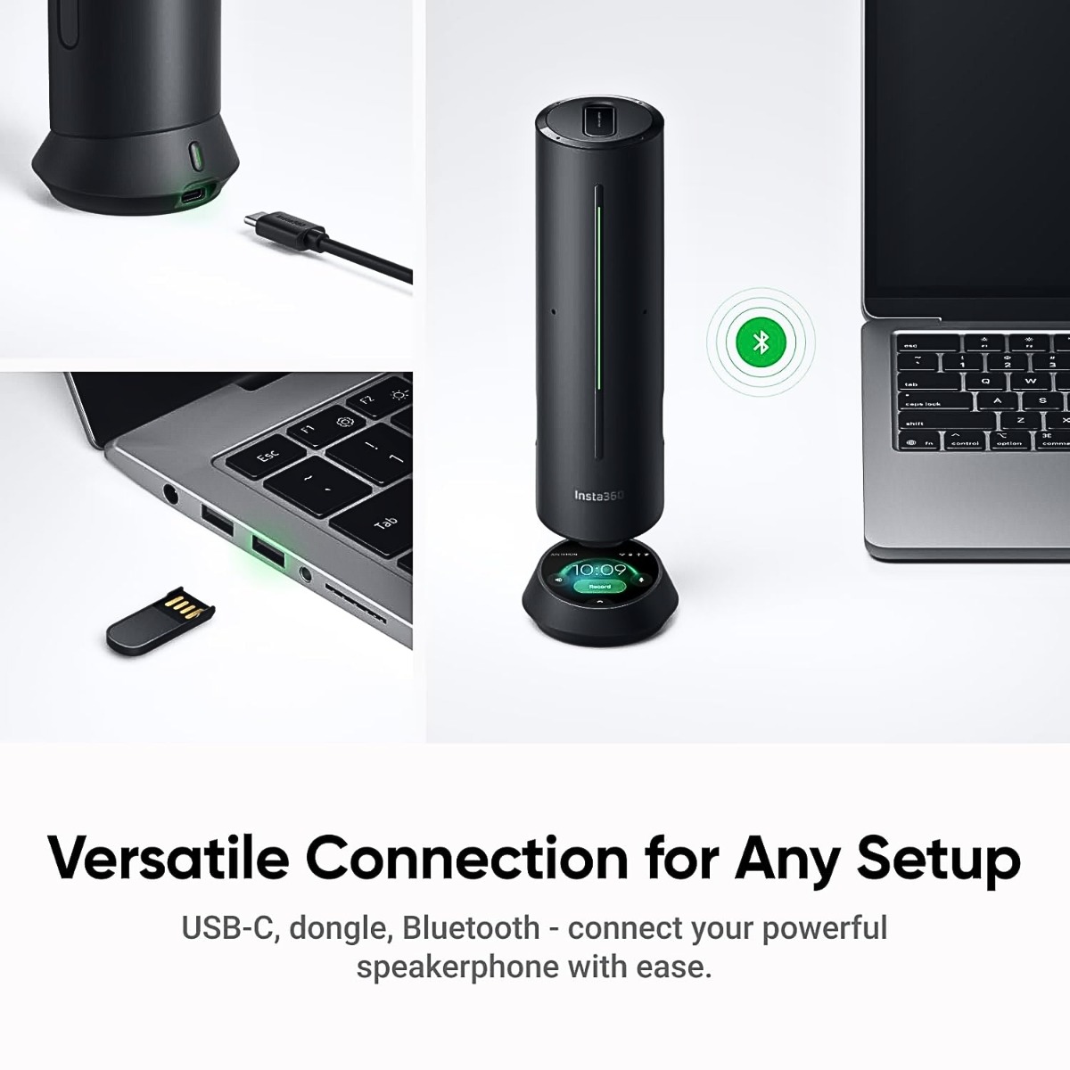 Seamless Connectivity Connectivity is seamless across all platforms with USB, Bluetooth, and dongle support. The Wave works with Windows, macOS, iOS, and Android devices, and can be paired with Insta360 Link 2 for synchronized audio and video conferencing. Multiple Wave units can also be linked together to cover larger rooms or events, making it a scalable solution for teams and professional environments. |