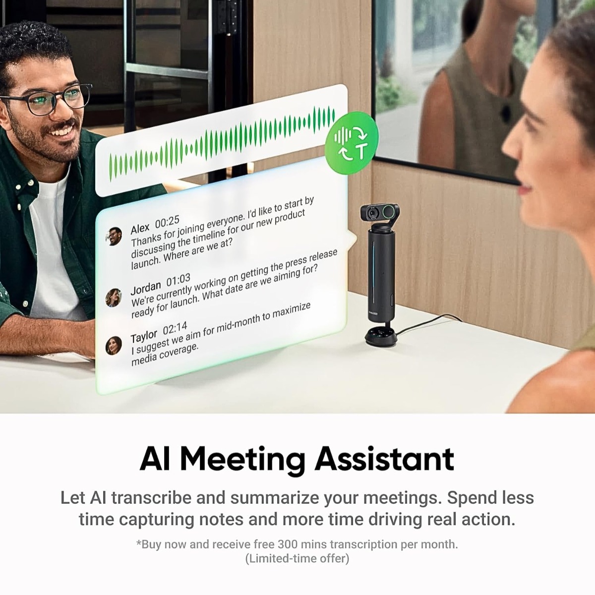 Insta360 Wave Intelligent AI Speakerphone for Remote Work, Podcasts & Meetings