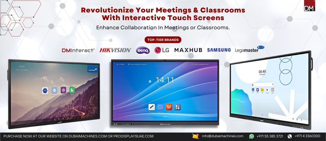 Looking to buy Interactive LED displays? You’ve come to the right place! We offer a wide selection of Interactive Flat Panels and LED displays in the UAE and worldwide at the best prices. Enhance your meetings and classrooms with advanced features like over 20-point touch handling, longer run times, 1080p and 4K Ultra HD resolution, and more. Available in various sizes to suit your needs, with free delivery within the UAE.