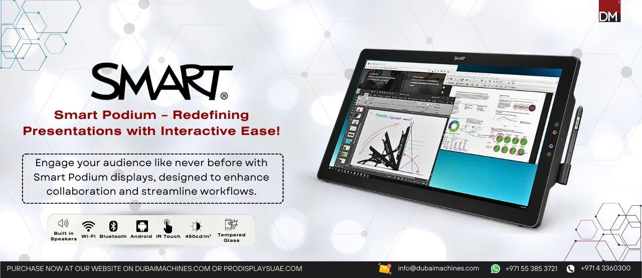 Looking to buy Interactive Podiums? You’ve come to the right place! We offer a premium range of interactive podiums designed to enhance presentations, meetings, and classrooms. Featuring advanced functionalities like touch handling, extended run times, and stunning 1080p and 4K Ultra HD resolution, these podiums combine cutting-edge technology with sleek design. Available in various sizes to meet your needs, with free delivery within the UAE and worldwide shipping available. Explore our Interactive Podiums today to get the best deals on high-quality interactive solutions!