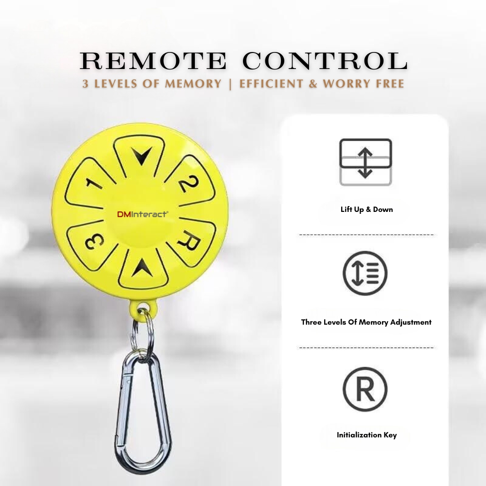 The DMInteract DM-75110-ES Electric Lift Stand is a versatile and robust solution for large displays, supporting universal screen sizes from 75 to 110 inches. With an adjustable lifting height range of 1200mm to 1700mm and a substantial load capacity of 136.40 kg, it ensures stability and flexibility for various setups. Constructed from high-quality aluminum alloy and cold-rolled steel plates, this stand offers durability and strength. It features multiple mounting hole positions for easy installation and includes a camera tray with a load capacity of 4.5 kg. Safety is prioritized with a child lock button and obstacle detection return function. Additionally, the stand offers convenient remote control operation for easy height adjustments and setting intervals.