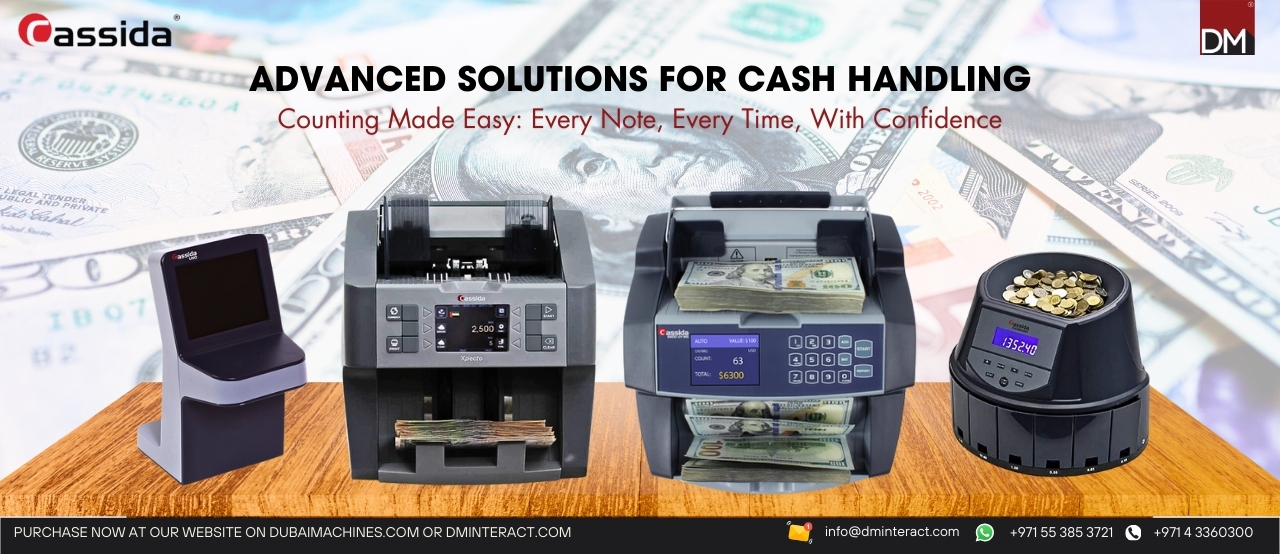 Cassida is one of the best money-handling equipment providers around the globe, there is new innovations, technologies, and the latest models available in the Cassida product range to take care of your day-to-day cash-handling problems. Dubaimachines.com is the authorized reseller and partner of Cassida in the middle east and hence provides you the best guaranteed money handling equipment.