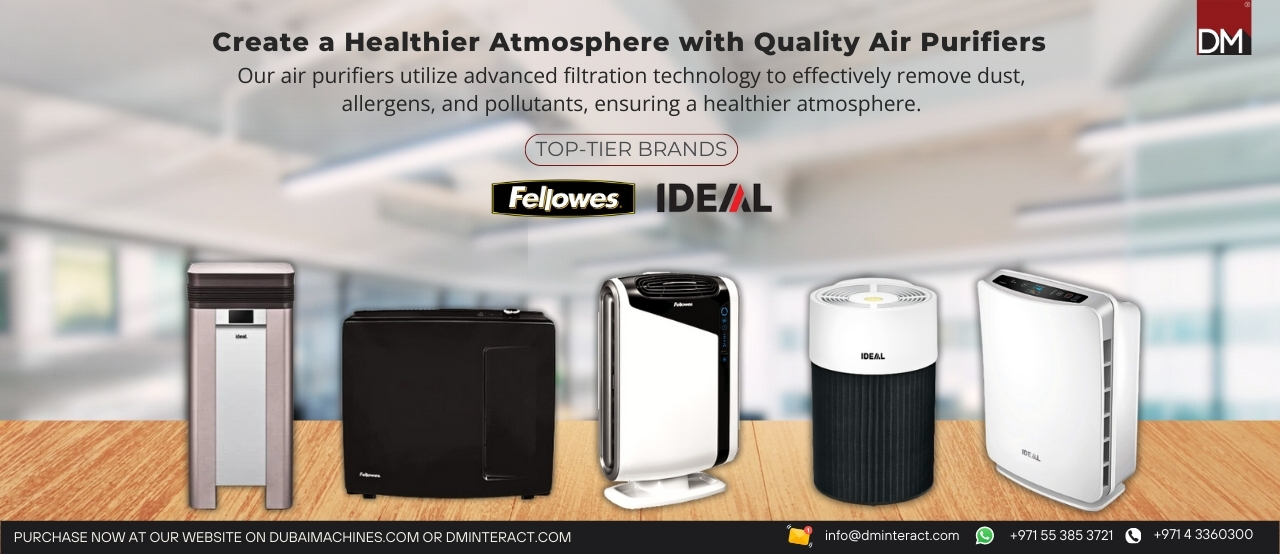 Experience unparalleled air quality with air purifiers from IDEAL and Fellowes, now available through DubaiMachines.com. These advanced air purifiers effectively remove dust, particles, and large airborne contaminants, ensuring cleaner and healthier air for your home. By improving air circulation and reducing respiratory diseases, these devices transform your living spaces into havens of pure, fresh air. Enjoy the convenience of worldwide delivery directly from the UAE, bringing the promise of pure air and pure living to your doorstep, wherever you are. Transform your home today and breathe easier with the trusted technology of IDEAL and Fellowes.