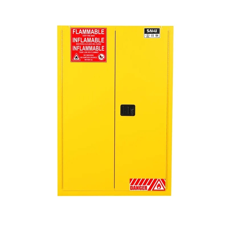 The SAI‑U SC2090Y Flammable Safety Cabinet is designed for the secure storage of hazardous and flammable liquids. It holds both US FM certification and EU CE certification, fully compliant with OSHA 29 CFR 1910.106 and NFPA 30 standards, as well as the Administration Regulations on the Safety Management of Hazardous Chemicals. Tested under rigorous FM standards, the cabinet withstands a 10-minute burn test, keeping all connections tightly sealed, doors securely closed, and internal temperatures below 162.7°C, ensuring dependable fire protection.