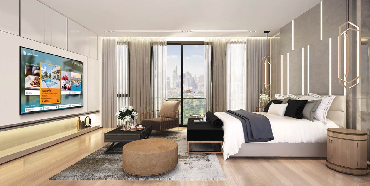 The AirSlim design profile contributes to a modern, minimalistic aesthetic that complements upscale interiors. Its ultra-slim structure allows seamless wall mounting while maintaining a clean and premium room layout. The reduced bulk enhances spatial efficiency, making it ideal for contemporary hospitality design standards.