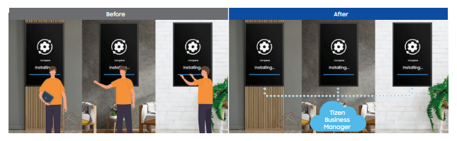 The simplified setup process allows managers and admins the ability to configure fixed settings after installation and manage them remotely from anywhere in the world. Using Tizen Business Manager, IT admins can register new apps and remotely install them.