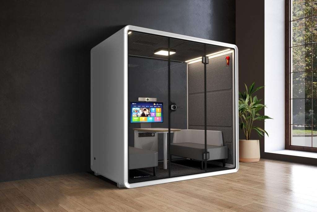 Elevate collaboration with the SonicHive Quartet Silence Booth, thoughtfully crafted to host up to four people. Designed with exceptional acoustics and superior sound isolation, it provides the ideal environment for team meetings, brainstorming sessions, or group recordings—delivering crystal-clear audio and complete focus, free from external noise.