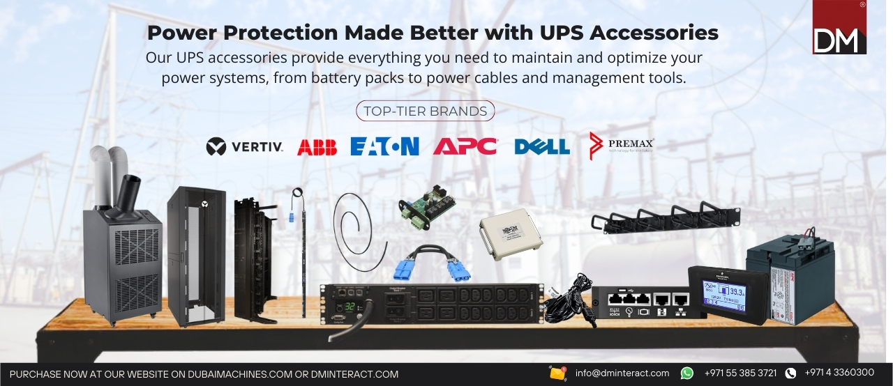 Explore a wide range of UPS Accessories designed to enhance the performance and reliability of your power systems. Book your UPS Explore a wide range of UPS accessories designed to enhance the performance and reliability of your power systems. Book your UPS accessories today from Dubaimachines.com for authorized products at competitive rates in Dubai, Sharjah, Abu Dhabi, UAE, and across the GCC.