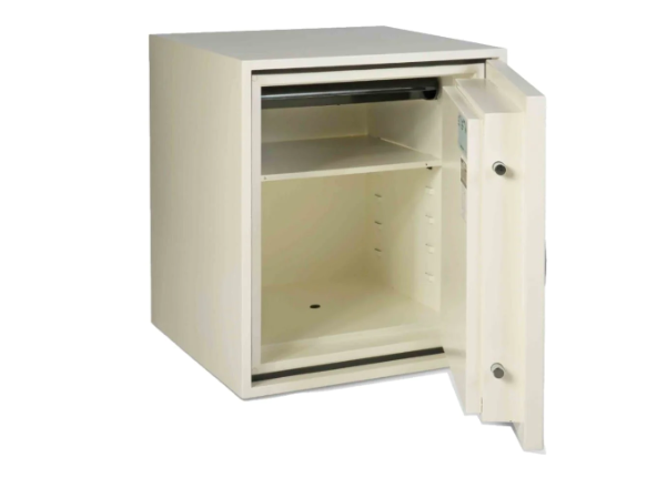 The safe body and door are manufactured with two inter-welded walls that are filled with fire resistant concrete