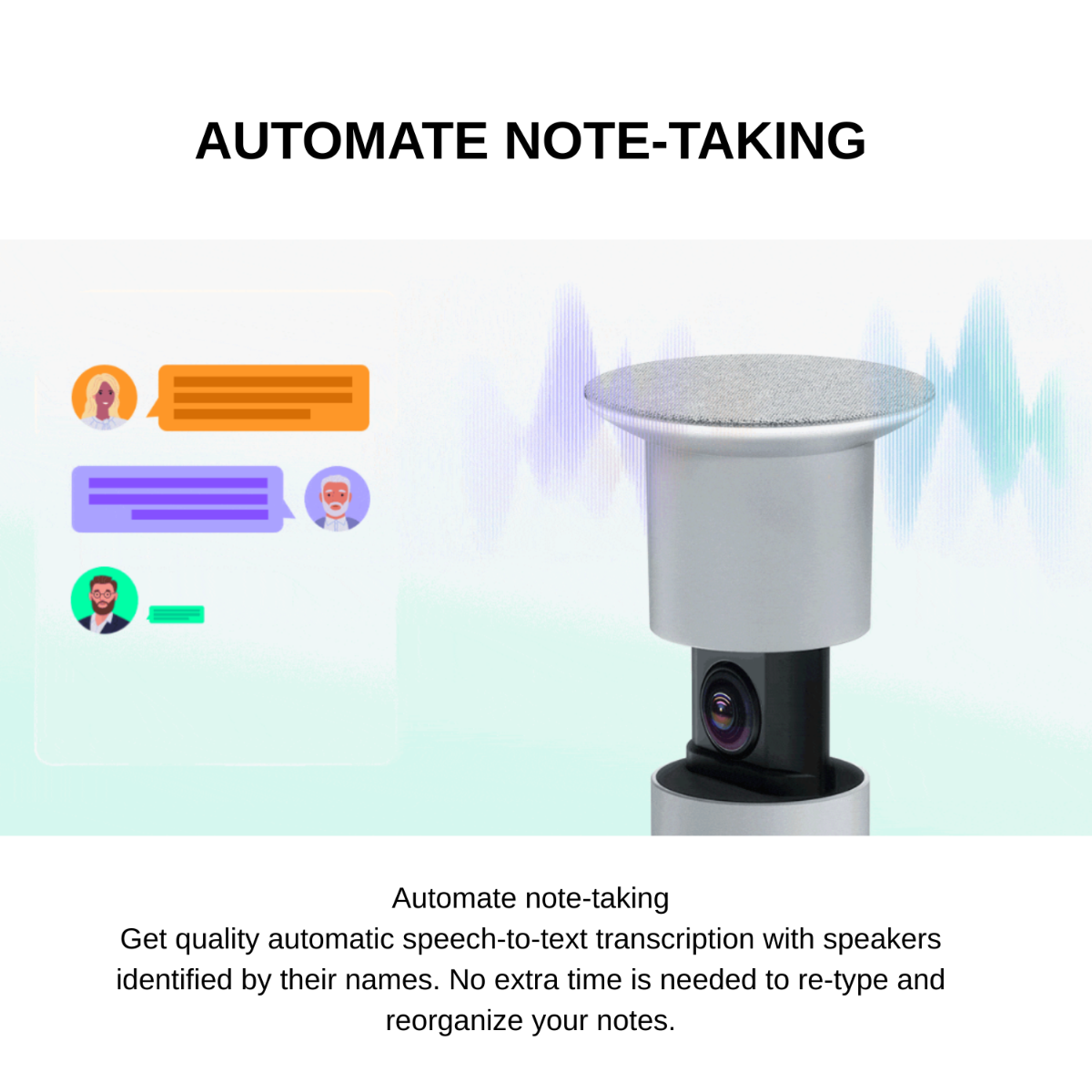 The SmartVision 60 delivers a 10K panoramic view, ensuring sharp and vivid visuals. With advanced AI technology, it provides participant identification, automatic framing, and intelligent focus, ensuring that every individual is always represented clearly in meetings.